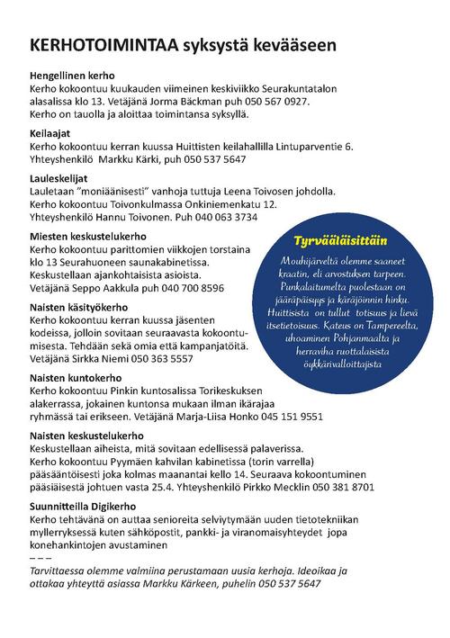 Kuukausitapaaminen Kauppalantalolla maanantaina 4.10.2021