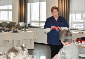 Seniorien kuukausitapaaminen Funkkiksessa 9.2.2026. Jalkaterapeutti PaulaVaara kertoi jalkojen terveydestä.